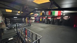- Upstairs | The Combat Zone A dedicated fight floor equipped with a full-size boxing ring and professional combat accessories. This is the training ground for our Muay Thai K1 and Jiu-Jitsu programs.